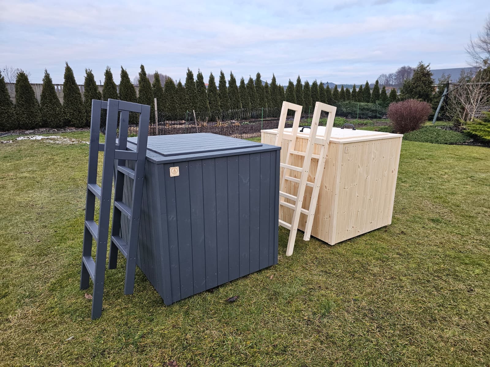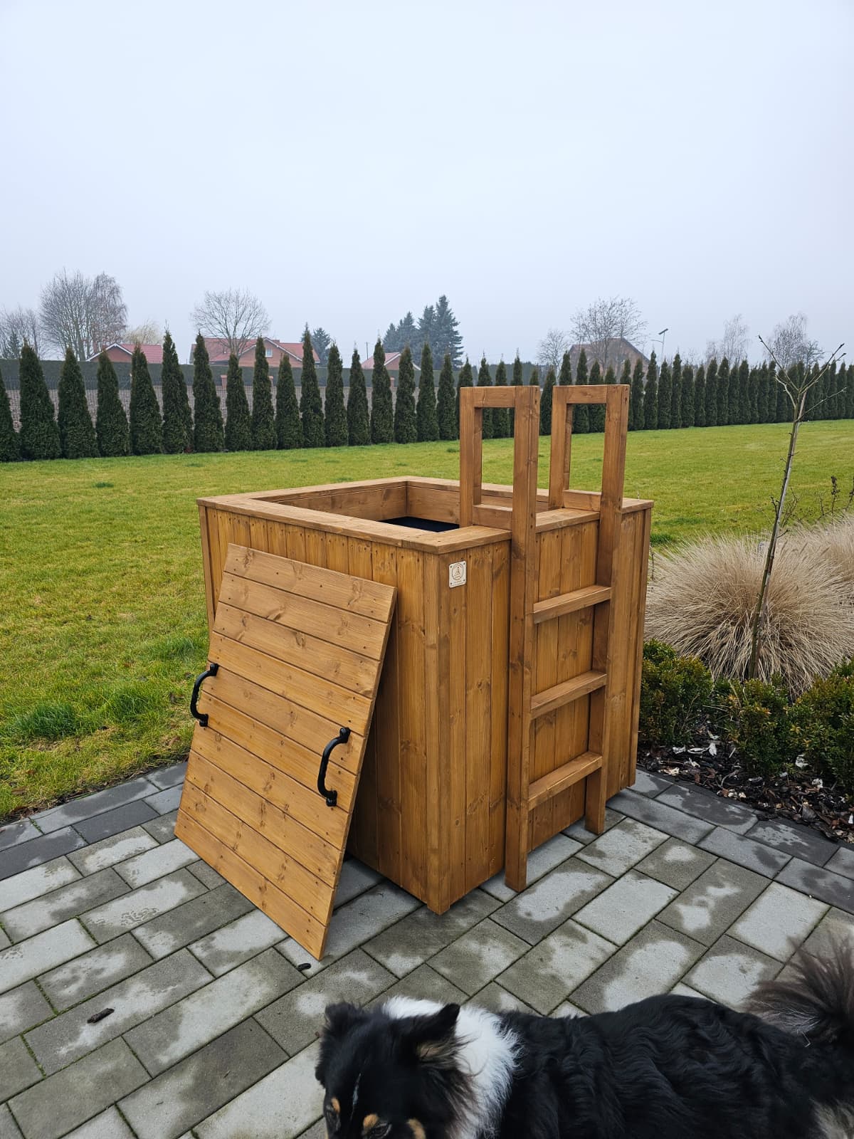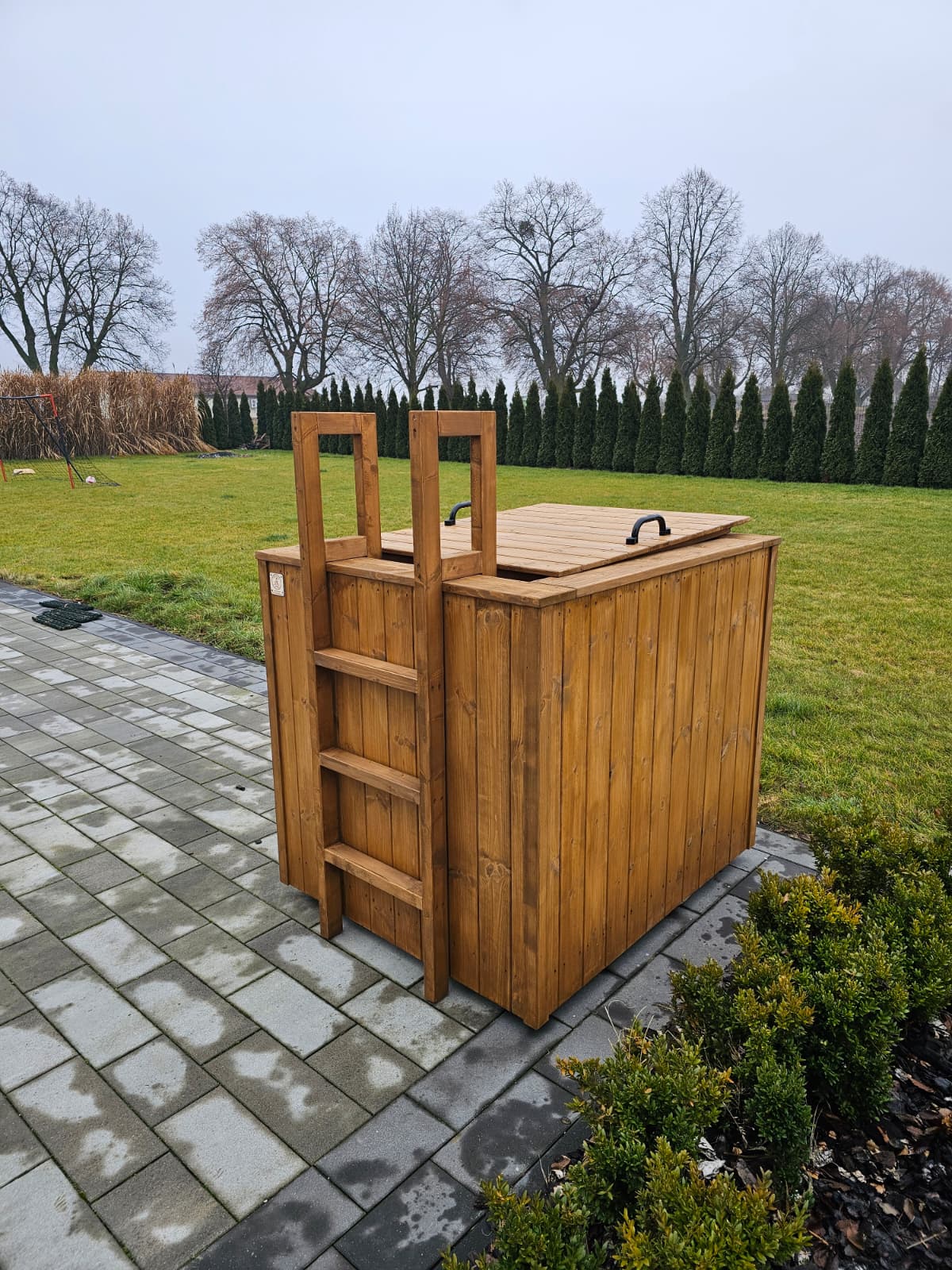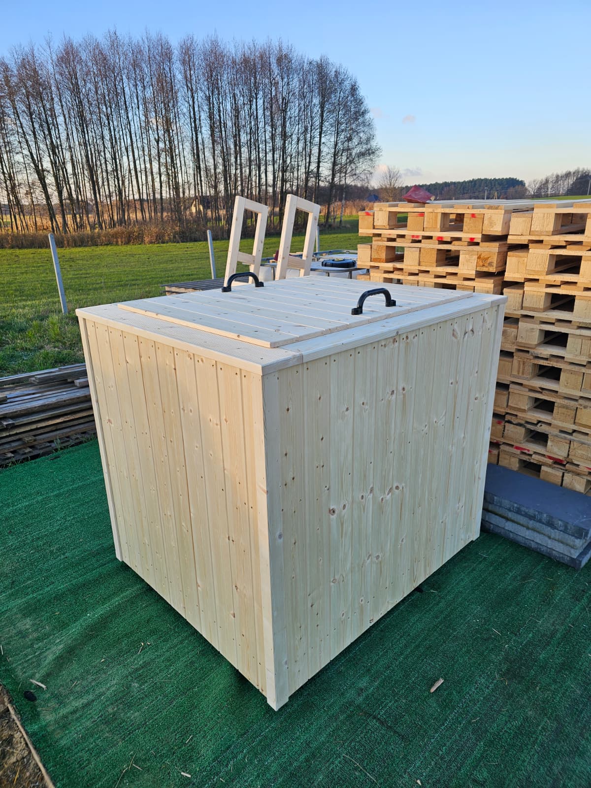 jest ocieplona styrodurem XPS 2 cm z każdej strony oraz obita sosnową deską elewacyjną 17 mm gr.